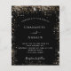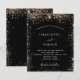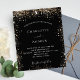 A modern, elegant wedding invitation. Black background decorated with faux gold glitter sparkles. Personalise and add your names and wedding details. White coloured letters.