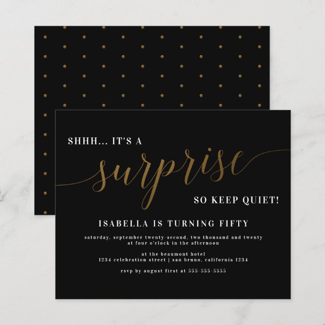 Budget Black & Gold Script Surprise Birthday Party