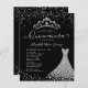 Modern Glam Black Silver Diamond Tiara Princess Gown Dress Glitter Confetti Sparkle 15th Birthday Quinceanera Invitation