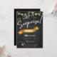 The simple, minimal black and white, surprise birthday party digital invitation with wooden background and gold plate.