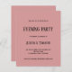 Budget Black Text Dusty Pink Evening Party Invite. 100% customisable. A modern typographical design on a smaller 4.5 x 5.6" budget price semi-gloss card (similar to the thickness of a postcard) to invite your evening guests to you wedding. Colours can be changed if required via customise further.