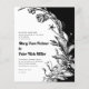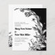 Introducing a budget-friendly vintage-style floral wedding invitation featuring black and white line art flowers and elegant typography. On the back, there's a convenient QR code for online RSVP. The invitation showcases a charming vintage black and white floral garland against a white background.