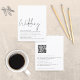 Black White Elegant Script Wedding Invite. A budget price SMALLER 4.5” x 5.6” alternative. Available in a SEMI-GLOSS 110 lb CARD STOCK which is the default option (thicker for invitations), OR a SATIN FINISH 80 lb THINNER PAPER STOCK (ideal for enclosures). Add your QR code to your wedding website on the back makes this a convenient option for your guests to RSVP and see all the details without the need for separate RSVP and details cards. You can create QR codes for free online. Simply search “QR code creator” and lots of options come up to create for free. An elegant informal set style for the header with all the details stylishly small beneath with lots of white space for a contemporary feel. Easily personalise with your info.