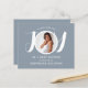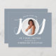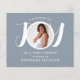 This modern baby boy's budget Baby Shower Invitation is decorated with the word JOY in stylish white typography on a blue background. Easily customisable with your photo and details.