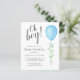 This budget couples boy's Baby Shower Invitation is decorated with a watercolor blue balloon and green eucalyptus and says "Oh Boy!"