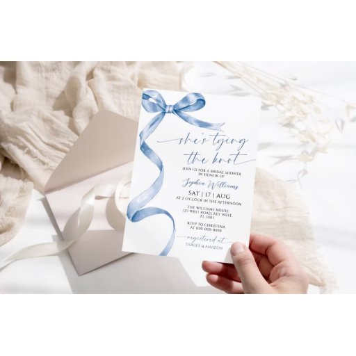 Budget Blue Bow 50 & Fabulous Birthday Invitation