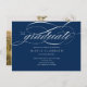 Budget Blue Modern Elegant Script Black White Graduation Party Invitation features a beautiful and elegant script, along with your party details, and your full photo on the back.