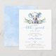 Budget blue floral elephant baby boy shower invitation.