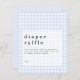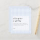 A budget price SMALLER 4.5” x 5.6” alternative. The SATIN FINISH 80 lb IS A THINNER PAPER STOCK (ideal for enclosures such as this), alternatively Available in a SEMI GLOSS 110 lb CARD STOCK (ideal for invitations). Envelopes are an optional extra and are slightly larger than the card size. Blue Gingham Diaper Raffle enclosure. Baby boy. The header is large in stylish lowercase with the details at the bottom on an opacity layer overlaid onto the gingham background. Easily personalise the text to your own details.
