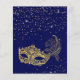 Design feature sparkling gold glitter masquerade ball mask with gold confetti.