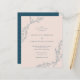 Modern and chic nature-themed wedding invitations, perfect for garden celebrations. Featuring hand-drawn foliage with leaves and flowers in navy blue against a blush pink background. A minimalist serif and italic typography display your wedding details and names. Reversing to simple polka dots on the back contrasting the front. As part of the budget selection here on Zazzle, these invitations come in limited sizes and paper stocks. If you need a different size or paper stock, this design can be transferred to a standard 5x7 format using the design transfer tool for more options.