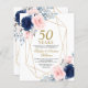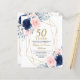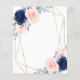 Navy Blue and Blush Pink Rose flowers decorate a thin gold frame.