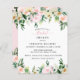This Budget Romantic Blush Pink Floral Bridal Shower Invitations - features black handwritten and elegant script text with floral cascade, consisting of blush pink roses and beige roses with greenery leaves. The reverse side of the bridal invitation is blush pink with cascade of blooming flowers.