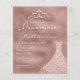 Modern Glam Blush Pink Rose Gold Diamond Tiara Princess Gown Dress Glitter Sparkle 15th Birthday Quinceanera Invitation