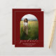 Invite your family and friends to celebrate this outstanding achievement in your life with our more affordable Boho Arch Graduation Invitation. Personalised with your details and two photos, the minimalist, classic design will beautifully highlight this amazing milestone in your life. We love the regal red background with white handwritten script typography, but be sure to take a look at our other options and accessories in our Graduation Collection.