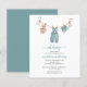 Oh so sweet baby clothes hang on a clothesline in this boho baby shower invitation. Features knit overalls, shoes and cute little bear. This charming invite has script typography with the words oh baby in muted blue as well as script for the mama's name. See coordinating items in our shop. **PLEASE READ BEFORE PURCHASING** Budget stationery measures 4.5 x 5.6 and fits inside an A6 envelope. It does not come with envelopes, but you can add white envelopes to your order. Each sheet is one item - no cutting is required. The default cardstock is bright white with a semi-gloss finish and 110lbs weight which is suitable for stationery. Please note: if you swich to the satin paper option it is a thinner 80lb paper, which is more like magazine pages than cardstock. Use Live Design Service if you need help with your design after making changes or if the design no longer looks right or is cropped. You can upgrade your order to a larger size, higher quality paper and envelopes by clicking transfer and choosing 5 X 7 flat card or click on our store link Enchanted Finch for other paper options. Your order goes directly to the printers. What you see on the screen is what will be printed and shipped to you. Please triple-check spelling and all details before placing your order to ensure accuracy.