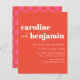 Budget Bold Pink and Orange Retro Chequerboard Pattern All-in-One Wedding Invitation
