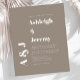 This simple, modern wedding invitation features minimalist white text on a taupe background. Add the names and monogram initials of the bride and groom in stylish bold typography and the details in sans serif font. The reverse side is a matching shade of solid taupe. NOTE: Envelopes are not automatically included with these budget invitations, so please remember to choose the "white envelopes" option!