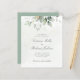Beautiful affordable Save the date card featuring watercolor eucalyptus and gold leaves with calligraphy script.