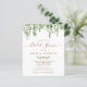 Invite your friends and family to your bridal shower with these eucalyptus greenery, elegant but casual bridal shower invitation postcards. These budget wedding invitation postcards need to be mailed as oversized postcards so may incur standard postage fees but they don't need an envelope or a return address label. Personalise with name, bridal shower date, location and any other info. Add website and any other information on the back. These unique greenery bridal shower invitations will make a lasting impression. COPYRIGHT © 2020 Judy Burrows, Black Dog Art - All Rights Reserved. Budget Botanical Greenery Bridal Shower Invitation