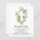 A value for money BUDGET alternative on a smaller size 4.5 x 5.6” semi-gloss 110lbs weight, which is of similar thickness to a postcard (however is not suitable to use as a postcard.). PLEASE NOTE there is ONE invite per sheet. Botanical Leaves Cross Baptism Invitation for your daughter or son. A large cross bordered with green foliage is at the top half. The header is large in stylish lowercase with the details beneath. Easily personalise the text to your own details.