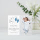This budget Boy's Baby Shower Thank You Card is decorated with elegant script typography and cute blue glitter baby's feet.