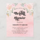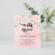The perfect pairing of pink and gold. Decorated with small golden sparkles. The background is a soft blush pink, while the flowers are white with eucalyptus greenery. Personalise and add a name and party details to this elegant piece that will make your guests feel special.