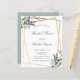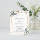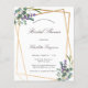 A stylish white background on the front. Decorated with eucalyptus and lavender florals. A faux gold geometric frame. Personalize and add a name and details.