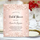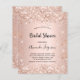 For an elegant bridal shower. A rose gold faux metallic looking background. Decorated with rose gold, pink faux glitter. Personalise and add the bride to-be's name and party details. The name and the text: Bridal Shower are written with a hand lettered style script
