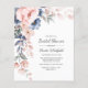 Announce upcoming bridal shower with a modern pink indigo blue watercolor invitation card the bride to be and the guests would love. Featuring beautiful botanical watercolor bloom and modern typography you can easily customise.