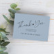 Budget bridal shower script dusty blue thank you card