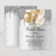 For a trendy and elegant bridal shower. A faux silver background. Decorated with faux silver glitter drips, paint dripping look and gold balloons. Personalise and add the name of the bride to-be and party details. The name and the text: Bridal Shower are written with a hand lettered style script