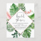 Budget Tropical Palms Watercolor Faux Rose Gold Foil Geometric Wedding Bridal Shower Invitations - includes beautiful and elegant script typography with modern botanical blush pink flowers and tropical Hawaiian greenery for the special Bride to Be celebration.