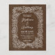 A pretty border lends a romantic touch to a simple textured brown and white colour theme. The hand drawn border is filled with wild rose flowers, leaves, butterflies, entwined branches and ribbons and two little birds. This look would be nice for a fall / autumn or winter wedding. Whimsical, unique artwork & design by Tuzi Williams.