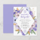 Elegant purple and blue flowers create a diamond-shaped frame to surround your post-wedding brunch details.