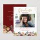 Budget Burgundy Floral Graduation Announcement
