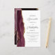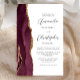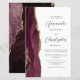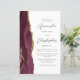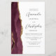 The left-hand edge of this elegant modern wedding invitation features a burgundy red watercolor agate border trimmed with faux gold glitter. The customisable text combines charcoal grey script and sans serif fonts on a white background. A matching burgundy agate design appears on the back of the card.