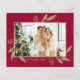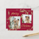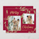 Budget Burgundy Gold Leaves 2 Photo Christmas Card