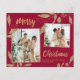 Budget, Elegant, Modern Burgundy and Gold Botanical Leaves 2 Photo Collage Merry Christmas Holiday (thin!) Card. Note: thinner paper than a postcard! This festive, whimsical two (2) photo holiday card template features a pretty photo collage, faux gold foil botanical leaves, winterberries and says Merry Christmas! The „Merry Christmas” greeting text is written in a beautiful hand lettered typography font type on burgundy red or bordo colour background. On the reverse side one horizontal photo with gold frame and faux gold glitter foil leaves arrangement on burgundy. Great choise for your family and friends in this Christmas and Holiday season. Cheap Holiday cards.