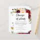 Save money on formal invitations with this smaller invitation that has an option for envelopes. Change the plans for your wedding with this Burgundy Marsala Floral & white Invitation. Small version.