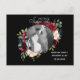 Gorgeous and elegant budget blush, burgundy and blue flowers on a black background. Absolutely stunning. Add your engagement photo surrounded by a beautiful floral wreath to this beautiful Save the Date card. So elegant and romantic. Perfect for your special day. Save on your budget by sending postcards.