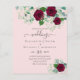 Pretty Burgundy Roses, Eucalyptus Leaves and Gypsophila feature on this elegant themed wedding stationery item.
