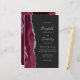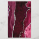 The left-hand edge of this elegant modern wedding invitation features a burgundy watercolor agate border trimmed with silver faux glitter. The customizable text combines silver gray handwriting, copperplate and italic fonts on an off-black background. The back features a matching burgundy and silver agate design.