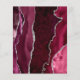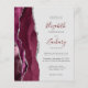 The left-hand edge of this elegant modern wedding invitation features a burgundy watercolor agate border trimmed with silver faux glitter. The customizable text combines burgundy handwriting script with charcoal gray copperplate and italic fonts on a pale gray background. The reverse side features a matching burgundy and silver agate design.