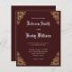 Get affordability AND quality with this "Burgundy Vintage Antique Lace" wedding invitation design. Design features a deep moody burgundy background with golden lacey border accents in each corner paired with a lovely antique calligraphy font for the Bride and Groom's names. *To customise further, please click the "Edit" button to open the on-site design tool. *Matching items available in our "Vintage Gold Lace" wedding collection. If you would like an item to match that we do not currently have, please contact me via the "message" button below or at themintymaker@gmail.com