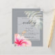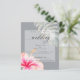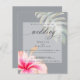 Affordable Rustic Tropical Watercolor Hibiscus and Foliage Wedding Invitation | NEW! Affordable Lightweight Wedding Invitations - a pink tropical hibiscus flower and one split leaf philodendron leaf adorn opposite diagonal corners both, edged in sparkling gold all set on a medium grey background with a sheer white overlay for the text to be easily read and yet allow the design to show through - beautiful handwritten calligraphy - easy to customise template - original design by ©WhimsicalArtwork™ for theBarefootBride ™. This is part of our Watercolor Tropical Hibiscus wedding collection as well as Baby Shower, Birthday and Christening Invitations. For question or assistance please contact designer indy.designer@yahoo.com.