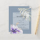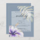 Affordable Rustic Tropical Watercolor Hibiscus and Foliage Wedding Invitation | NEW! Affordable Lightweight Wedding Invitations - a lilac purple tropical hibiscus flower and one fern leaf adorn and one split leaf philodendron leaf adorn opposite diagonal corners both, edged in sparkling gold all set on a dusty blue background with a sheer white overlay for the text to be easily read and yet allow the design to show through - beautiful handwritten calligraphy - easy to customise template - original design by ©WhimsicalArtwork™ for theBarefootBride ™. This is part of our Watercolor Tropical Hibiscus wedding collection as well as Baby Shower, Birthday and Christening Invitations. For question or assistance please contact designer indy.designer@yahoo.com.