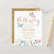 Whimsical butterfly theme baby shower invitation featuring pink and mint green butterflies with faux gold glitter. There is a flower garden at the bottom. This invite is perfect for a girl baby shower in the spring or summer. This card is smaller than the standard invitation card on zazzle, and the option to change the paper shape and type is not available. It's a budget-friendly option!