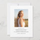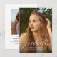This graduation announcement features a large, full front photo with calligraphy script overlay and a second photo on the back along with your graduation party invitation. The back elements can be removed by clicking the button to edit further.