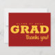 A flat thank you note with the words "Class of 20XX GRAD thanks you" in bold yellow gold lettering on a cardinal red background has room for a printed message on the back or leave blank to handwrite. MATCHING items in our store.